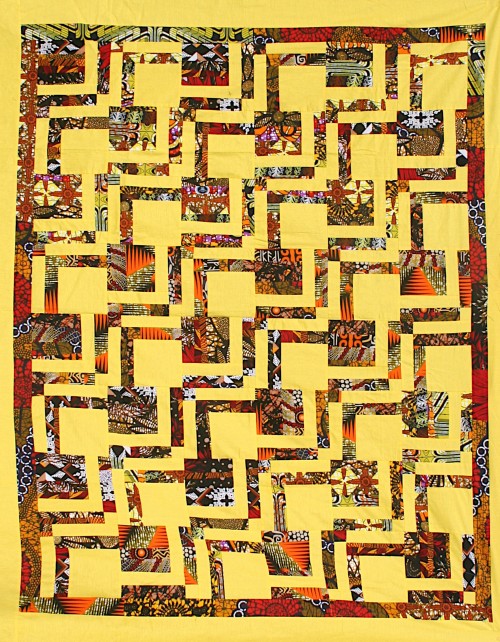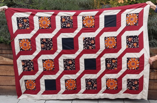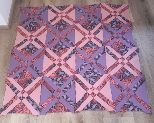 V létě v roce 2023 jsem dostala nabídku spolupráce a ráda ji přijala a začala na plné obrátky na tomto projektu pracovat a společně připravovat výstavu v Praze. Bohužel během spolupráce se vyskytly problémy a poslední den výstavy byla spolupráce ukončena a já přišla o možnost dále s africkými látkami pracovat. Jelikož mi ale zbyly úplně malinké kousky, chtěla jsem si uchovat na afriku vzpomínku a tak jsem je rozdělila podle barev na 3 skupiny a z každé skupiny ušila 24 čtverců. Tyto čtverce jsem zkombinovala podle barev se žlutou, červenou a hořčicovou a vytvořila tři jednoduché vzory ze čtverců 25×25 cm jeden čtverec afrika a jeden čtverec jednobarevná látka a vznikly tyto 3 krásky.