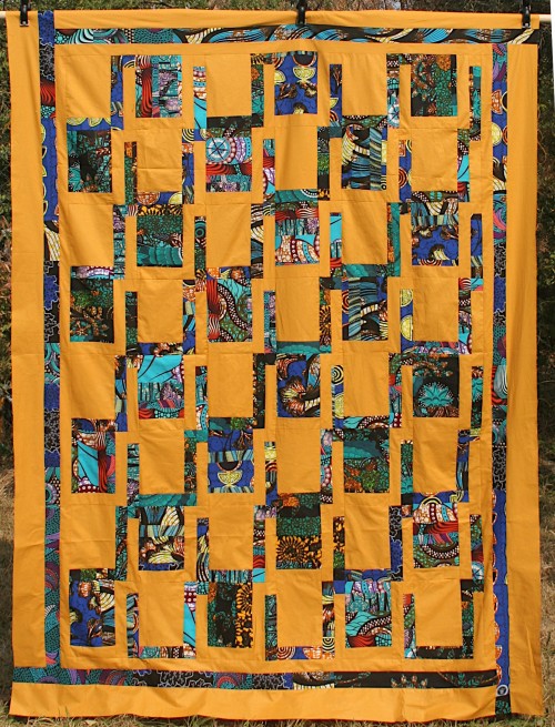 chtěla bych se s vámi podělit o moji zkušenost s africkými látkami. V roce 2023 jsem měla možnost seznámit se s africkými látkami. Na první pohled mě moc z pohledu patchworku nezaujaly, ale pak jsem zkusila z jednoho jardu, který jsem dostala ušít deku a začala jsem přemýšlet jak je využít v patchworku. Je to tato modrá deka, která mi změnila pohled na tyto látky. Začala jsem experimentovat se vzory a kombinovat africké látky s jednobarevnými.