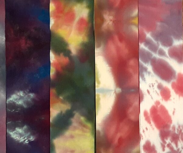 V balíčku jsou 10 cm pruhy dlouhé cca 140 cm. Počet pruhů v balíčku je 10ks. Jedná se o ručně barvené bavlněné vzorované látky reaktivními barvami, které jsou barevně stabilní.