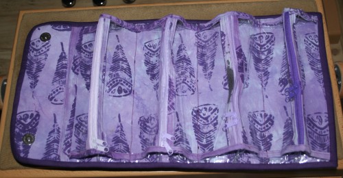 Rolovací kabelka na kosmetiku nebo třeba pastelky.